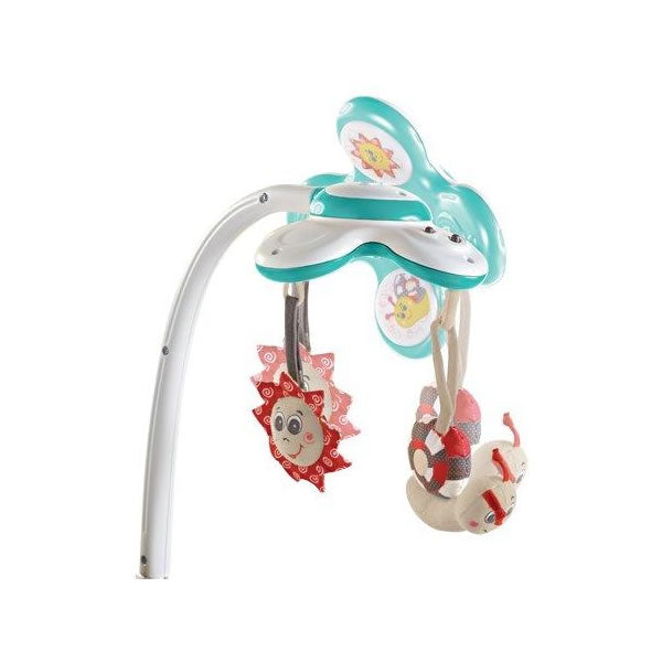 モビールの角度は自由に変えられます。アームの取りつけ・取り外しも簡単で、お世話をする時の邪魔になりません。