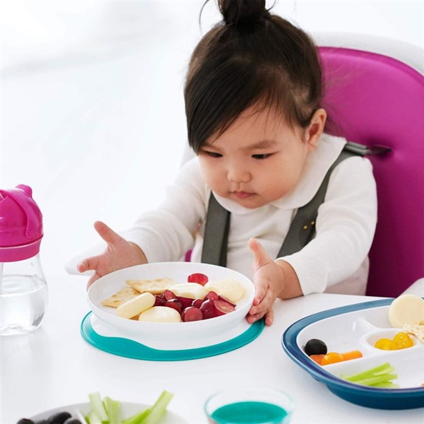oxo tot くっつくシンプルプレート ティール オクソートット テーブルに吸盤で固定できる