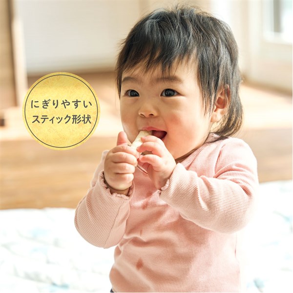自分でしっかりつかめて、手づかみ食べの練習にもなります。ボロボロこぼれず、口の中でふやかしながら食べることが出来ます。