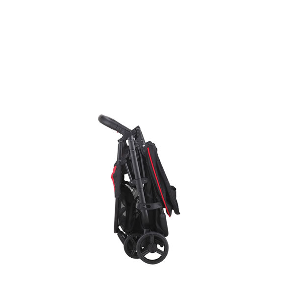 1カ月から3歳頃まで長く使える2人乗りA型ベビーカー。ツインベビーカーの中では最小・最軽量クラス! 座席部にある2箇所のベルトを引っ張るだけで簡単に折りたたむことができ、軽いから持ち運び&収納に便利です。リクライニングがベッドになるので生後1カ月から約3年間も長?く使え、双子の赤ちゃんはもちろん、兄弟姉妹も一緒に乗れるのがうれしい! 下カゴ(5kg以上の荷物は不可)も装備されているので多くなりがちな荷物もたっぷり収納できます。