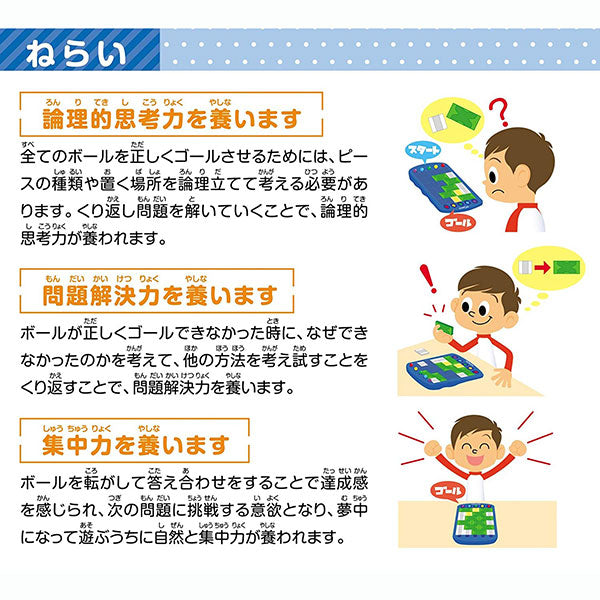 パズルとしてのおもしろさとボール転がしとしての楽しさの両方を感じながら遊ぶことができます。
