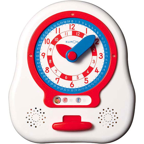 針を自分で回して時計の読み方を練習する「時計のおもちゃ」です。針と同じ色の数字を読むだけで、正しい時刻がわかります。