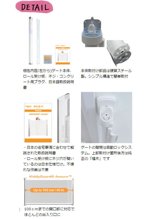 1.乳幼児用移動防止柵。取り付け幅は0~100cmまでの自在幅。工業デザイン先進国スウェーデンでデザイン。