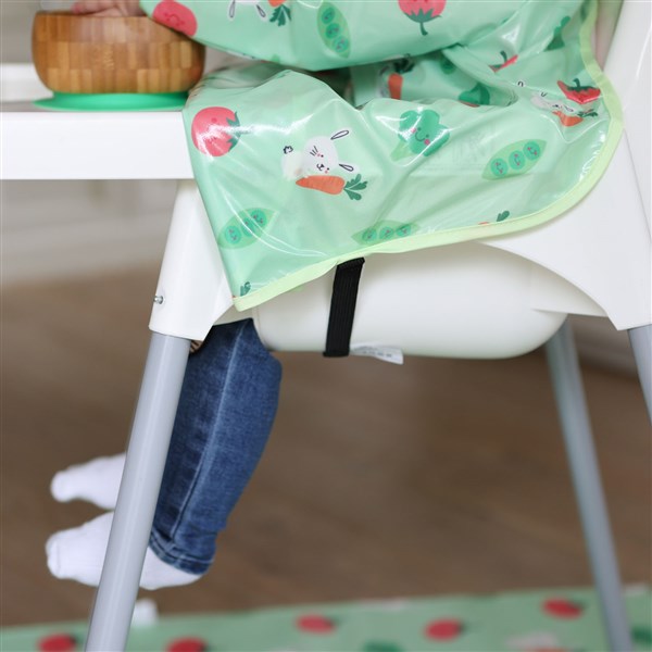 お子様とハイチェアのテーブルまですっぽりカバーしてくれるので汚れを気にすることなくお食事をお楽しみいただけます。