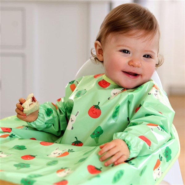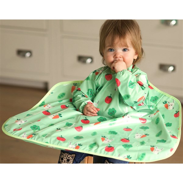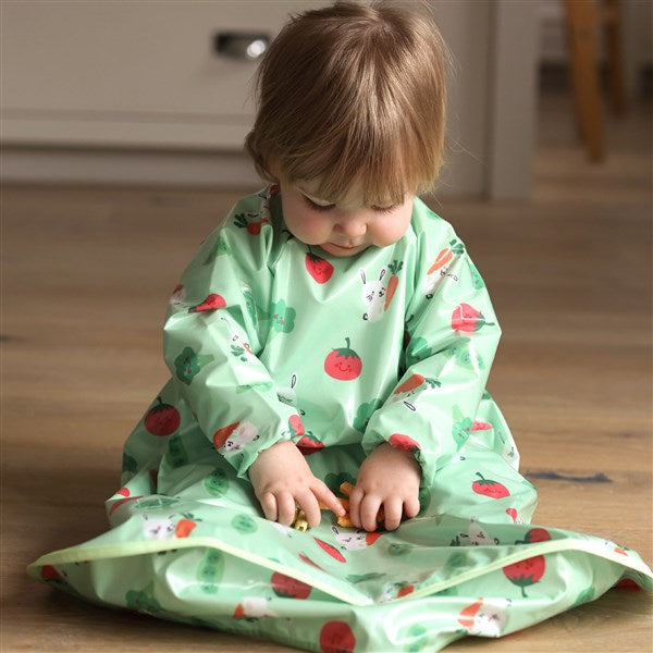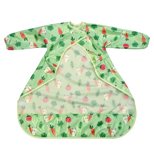 ビベッタ ワイプイージー カバーオール 長袖ビブ グリーン バニーアンドベジタブル Bibetta コントリビュート 防水 離乳食 エプロン お食事 長袖 ビブ スリーブ付き【メール便送料無料】