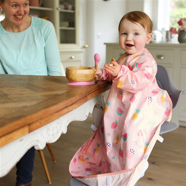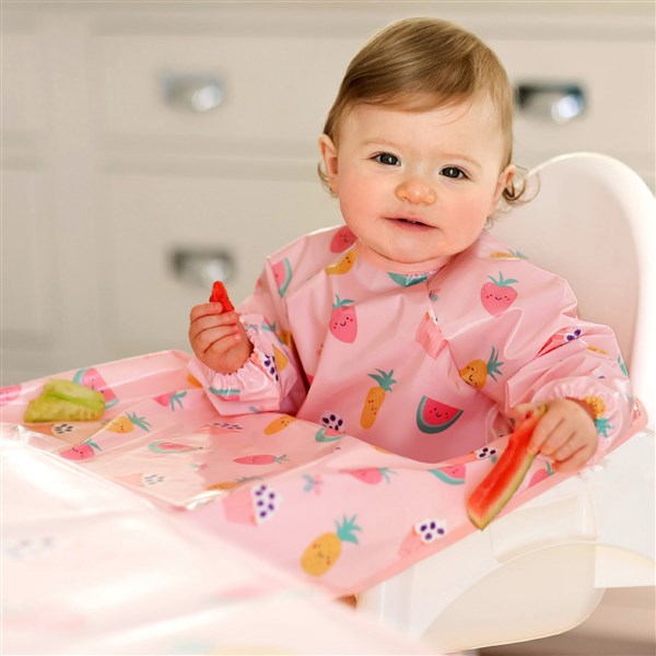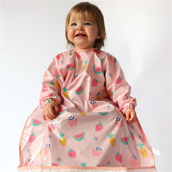 ビベッタ ワイプイージー カバーオール 長袖ビブ ピンク ヤミートリート Bibetta コントリビュート 防水 離乳食 エプロン お食事 長袖 ビブ スリーブ付き【メール便送料無料】