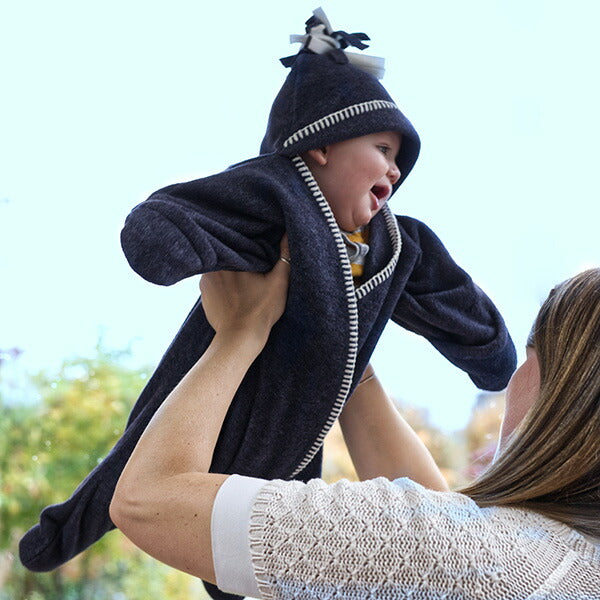 フードにはキュートなポンポンがついているので、髪の毛の少ないベビー期でもオシャレにきまる♪スターラップを着せたまま抱っこができて、ベビーカーやベビーシートにもそのまま乗せられちゃいます!キュートで豊富なカラーバリエーションが揃っているので、お好みの色がきっと見つかるはず ※ホルムアルデヒド量測定試験合格品