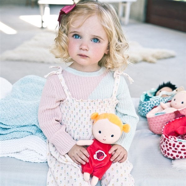 赤ちゃんドールとバスケットが一緒になったごっこ遊びセット。赤ちゃんのお洋服は着せ替えができ、おむつも替えられます。バスケットにはブランケット付き。お子さまの思いやりの気持ちを育みます。