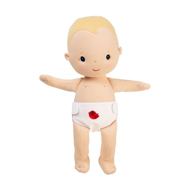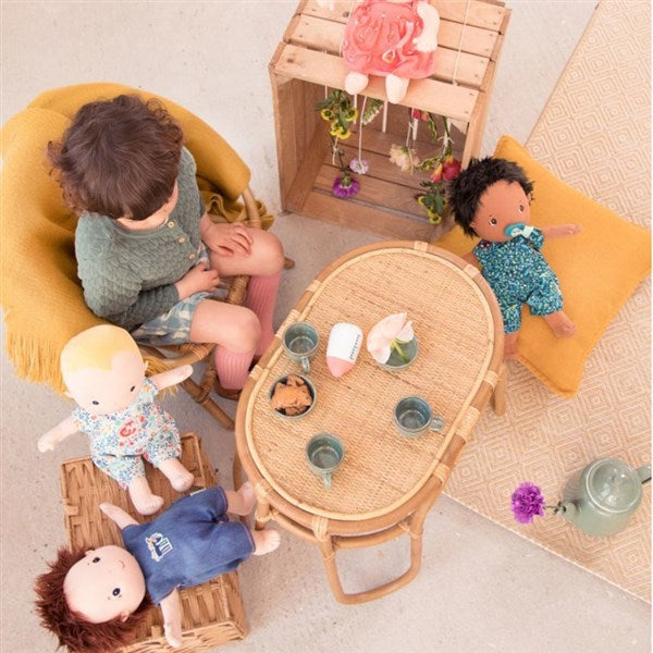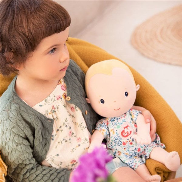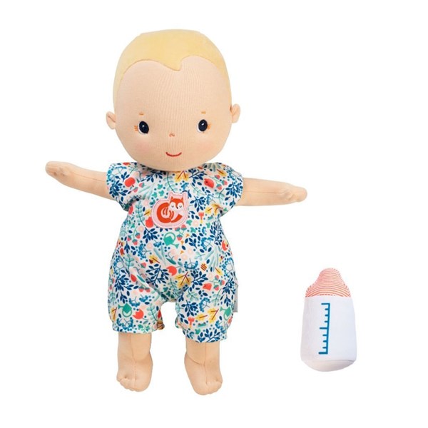「自然に多くのことを感じてほしい、学んでほしい」と願うママたちの思いから生まれたベルギーの知育玩具ブランドLilliputiens(リリピュション)。大きめのドールには、お洋服と哺乳瓶、布おむつがセット。付属のおもちゃを使ってママ・パパになりきって赤ちゃんのお世話を。哺乳瓶と赤ちゃんのお口にはマグネットが入っているので、リアルな授乳も楽しめます。