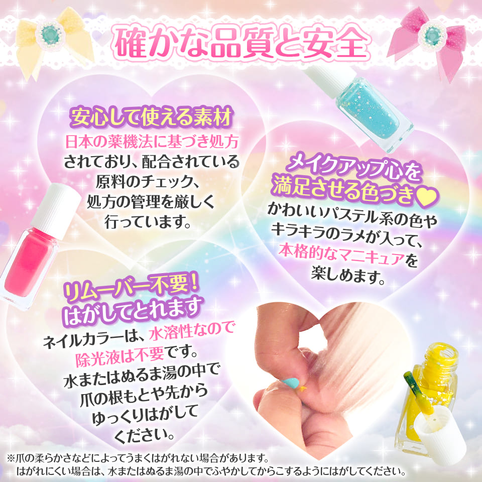 ネイルカラーは水溶性なので除光液を使わず、はがせます。