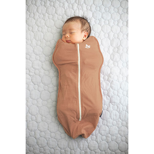 本製品はお子様が安心して良質な睡眠がとれるよう手助けするスワドル(おくるみ)です。赤ちゃんは自然とママのおなかの中と同じ、手足をぎゅっと閉じた姿勢になるので安心して眠りにつくことができます。また、「モロー反射」の動きが抑えられるので、眠りを妨げる心配がありません。使い方は簡単!ファスナーを開けて着せるだけ!くるんだり、結んだりする必要はありません。