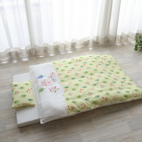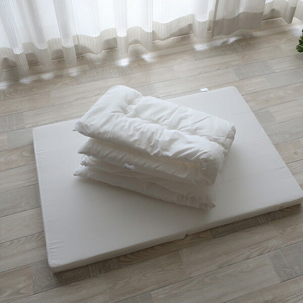 赤ちゃんが肌に触れるフィットシーツ、枕カバー、掛けカバーは、吸水性、発散性に優れたWガーゼ生地仕様の布団セットですから汗っかきの赤ちゃんにも安心です。固綿の敷き布団ヌードは洗濯不可となっております。洗われますと乾ききるまでにかなりの時間を要します。又、劣化の原因にもなりますので、洗わずに、風通しの良い場所にて陰干しして湿気を取り除いて下さい。