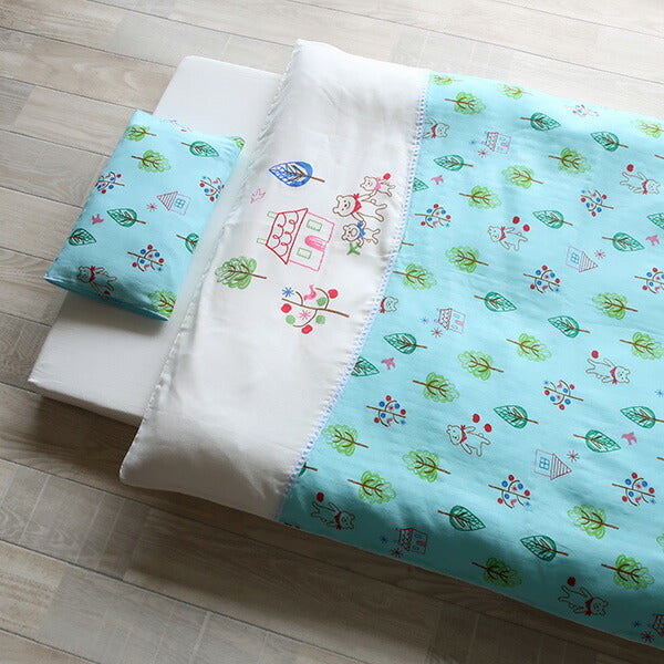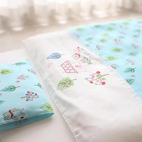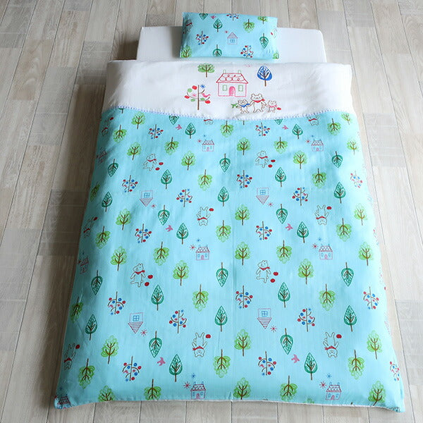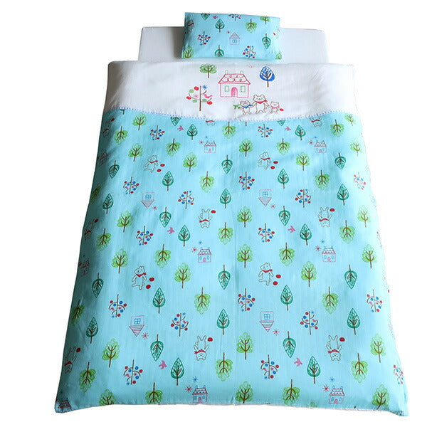 ベビー布団 Wガーゼミニ布団6点セット フォレストフレンズ サックス フジキ【送料無料 沖縄・一部地域を除く】
