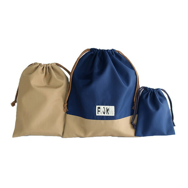 巾着袋3点セット ナイロンワッシャー ネイビー フジキ 日本製 【体操服 体操着 シューズケース 上履き入れ コップ入れ 小物入れ 巾着 通園 通学 靴入れ シューズバッグ 幼稚園 小学生】
