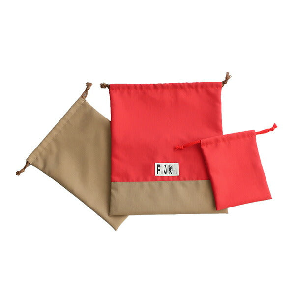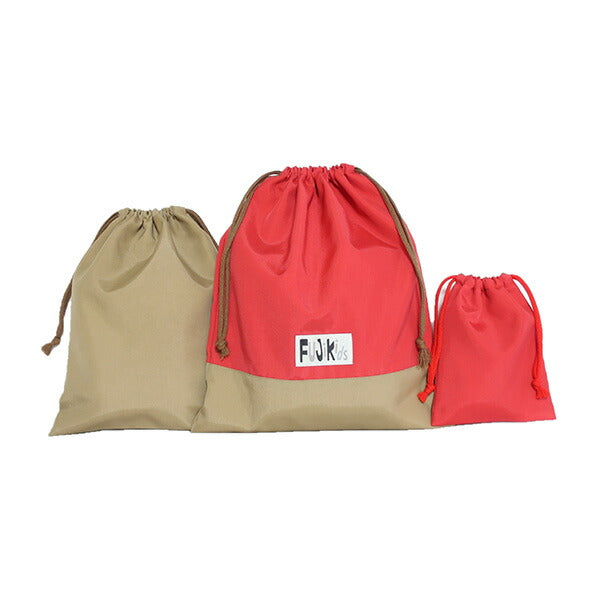 巾着袋3点セット ナイロンワッシャー レッド フジキ 日本製 【体操服 体操着 シューズケース 上履き入れ コップ入れ 小物入れ 巾着 通園 通学 靴入れ シューズバッグ 幼稚園 小学生】