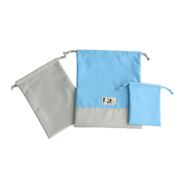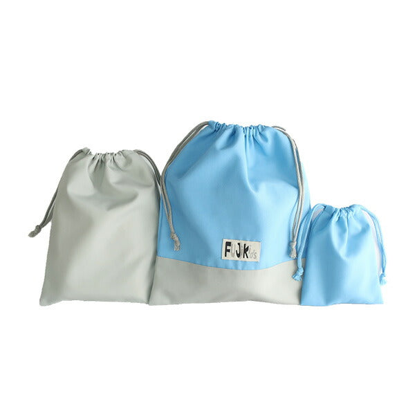 巾着袋3点セット ナイロンワッシャー サックス フジキ 日本製 【体操服 体操着 シューズケース 上履き入れ コップ入れ 小物入れ 巾着 通園 通学 靴入れ シューズバッグ 幼稚園 小学生】