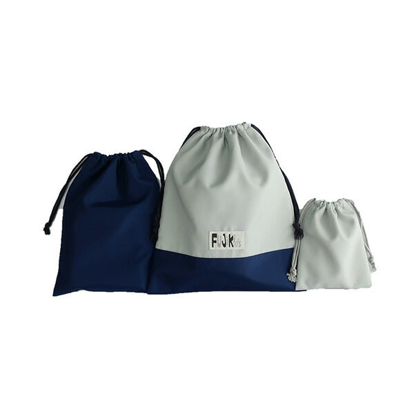 巾着袋3点セット ナイロンワッシャー ライトグレー フジキ 日本製 【体操服 体操着 シューズケース 上履き入れ コップ入れ 小物入れ 巾着 通園 通学 靴入れ シューズバッグ 幼稚園 小学生】