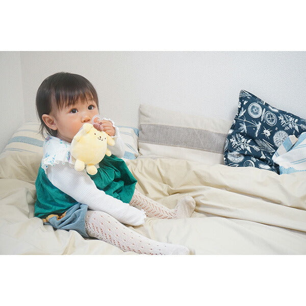 お気に入りのおしゃぶりが使えるアダプター付きぬいぐるみです。おしゃぶりをうまくくわえられないお子様でも、ぬいぐるみ部分を持つことでおしゃぶりを落としにくくなります。おしゃぶりを卒業したあとも大切なぬいぐるみとして使えます。専用おしゃぶり入り・ギフトにもそのまま利用していただけるおしゃれなパッケージ。