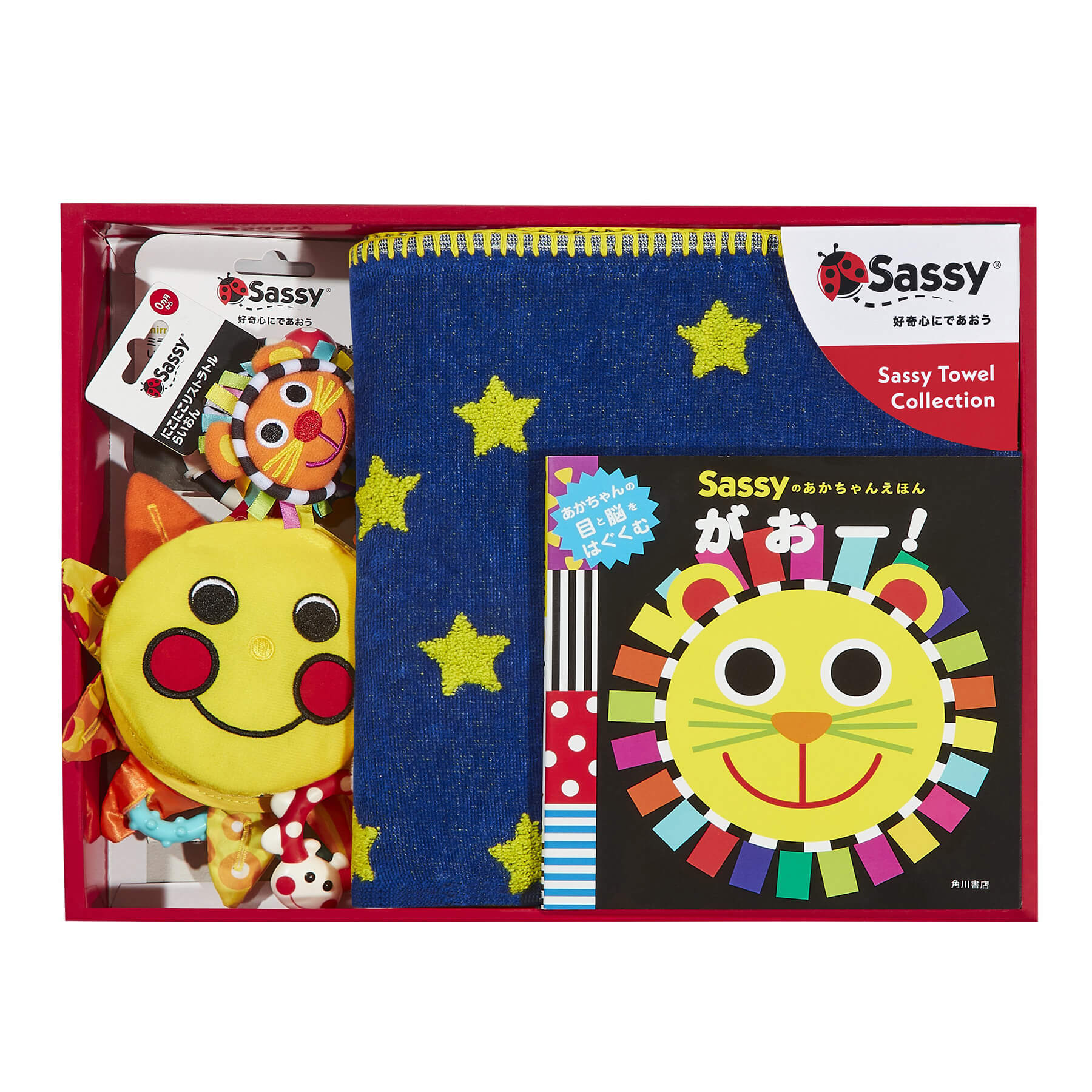 アメリカの知育トイブランドSassy(サッシー)。 赤ちゃんの脳・体・情緒の発達研究に裏づけされたカラフルなデザインが特長です。そんな鮮やかで楽しくなるデザインがモチーフになった、大人気のサッシータオル。赤ちゃんの五感を刺激し、発達を促す色づかいをタオルに込めました。お祝いやお返しなど、さまざまなシーンでオススメ。