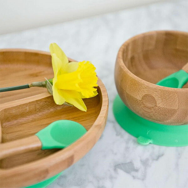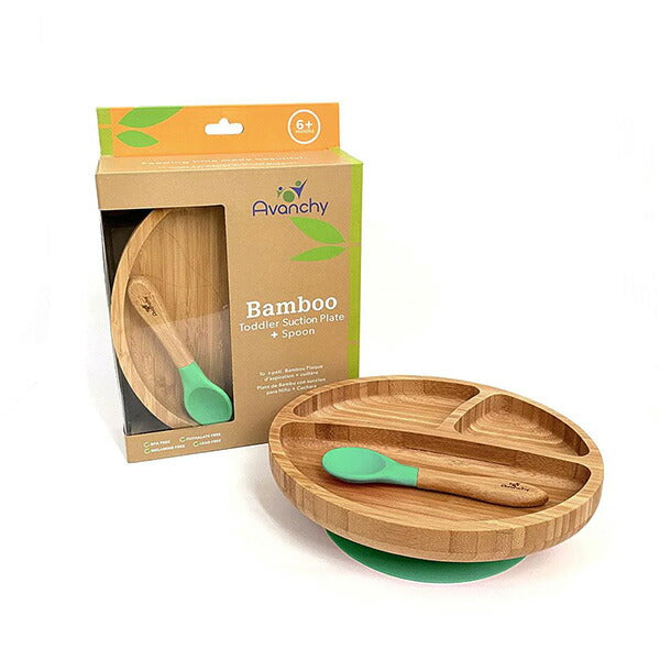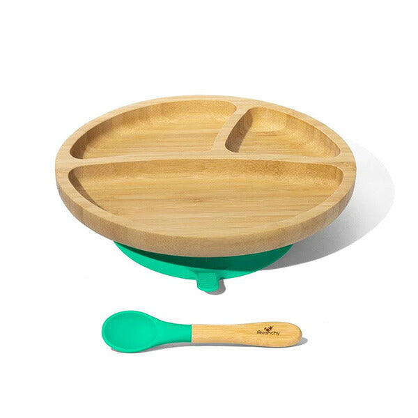 アヴァンシー 竹のプレートワイド+スプーンセット グリーン avanchy 吸盤・スプーン付き ベビー食器セット ティーレックス【送料無料 沖縄・一部地域を除く】