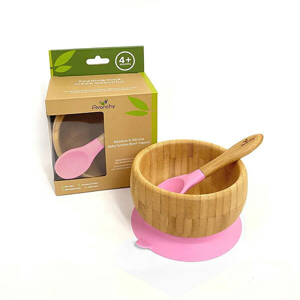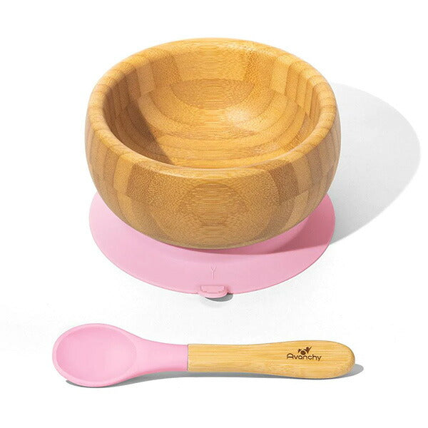 アヴァンシー 竹のボウル+スプーンセット ピンク avanchy 吸盤・スプーン付き ベビー食器セット ティーレックス【送料無料 沖縄・一部地域を除く】