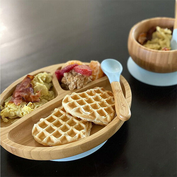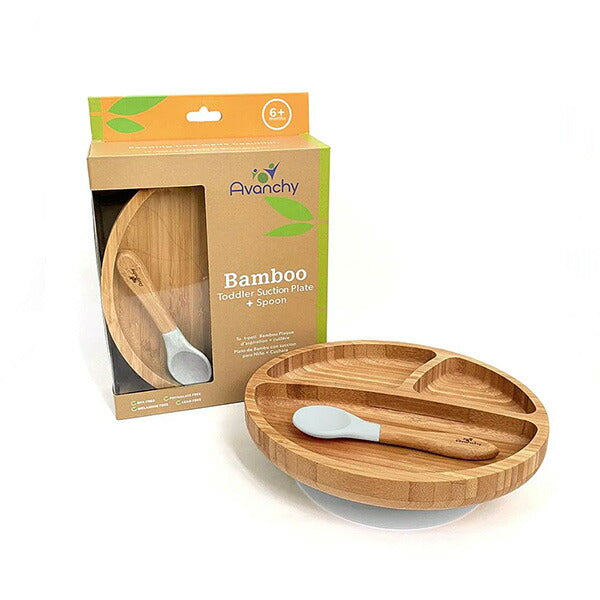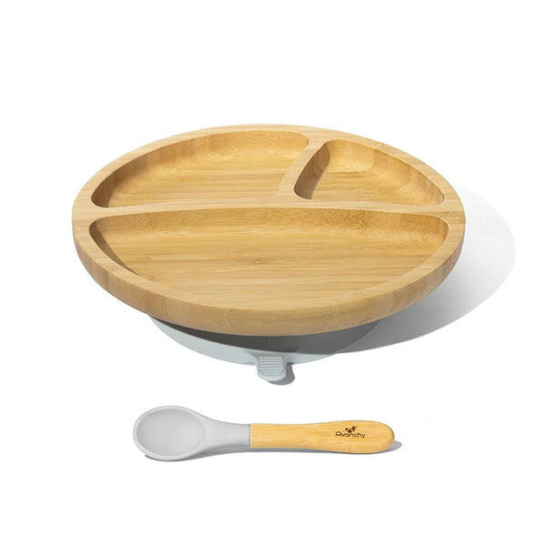 アヴァンシー 竹のプレートワイド+スプーンセット グレー avanchy 吸盤・スプーン付き ベビー食器セット ティーレックス【送料無料 沖縄・一部地域を除く】