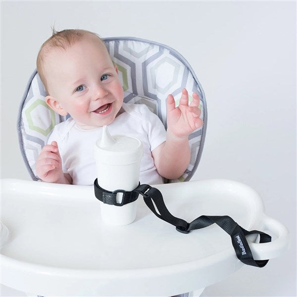 ボトルを留めるストラップの内側に装着された特許取得のEVA素材がボトルを空回りさせません。取り付けは、ベルクロテープでワンタッチ!すべらないEVA素材だから、おもちゃもしっかりグリップします。ストラップは、約17~29cmまで長さを調整できます。調節はパーツをスライドさせるだけです。ベビーカーやハイチェア、チャイルドシートなどいろいろな場所で使えます。こちらも取り付けはベルクロテープで簡単です。