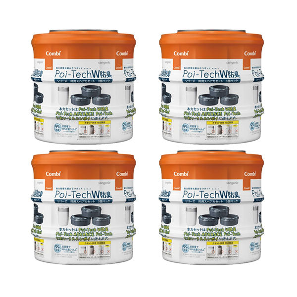 コンビ 強力密閉抗菌おむつポット ポイテックシリーズ 共用スペアカセット W消臭 12個セット(3個×4) 環境に優しいバイオマスフィルム使用【送料無料 沖縄・一部地域を除く】