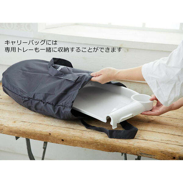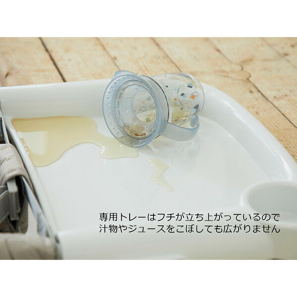 付属の専用トレーはドリンクホルダー付でコップの転倒を防止。食べこぼしが広がらず、外して水洗いできるのでお食事の後片付けが簡単です。