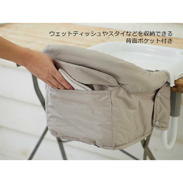 テーブルの天板を挟んでアームを回転させるだけの簡単固定、収納袋内蔵で気軽に持ち運べるので旅行や外出先でも活躍します。