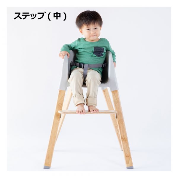 座面シート、ステップ、背もたれで姿勢をサポートするベビーチェアです。子供の食事時に大切な姿勢。姿勢が崩れてしまうと食事への集中力の低下や消化が悪くなってしまうことも…しっかりとした姿勢でお食事時間をより楽しく過ごしましょう。