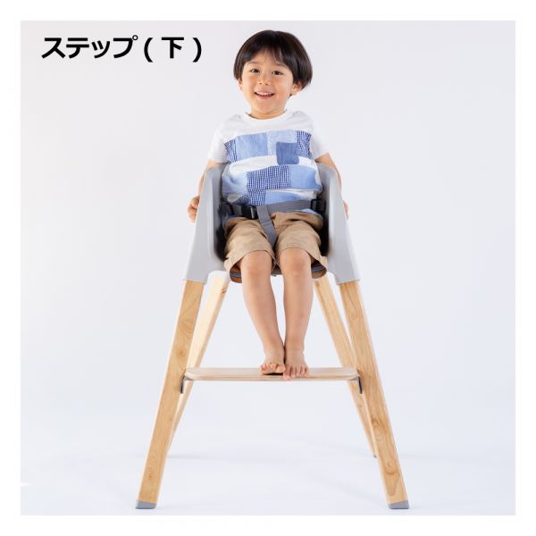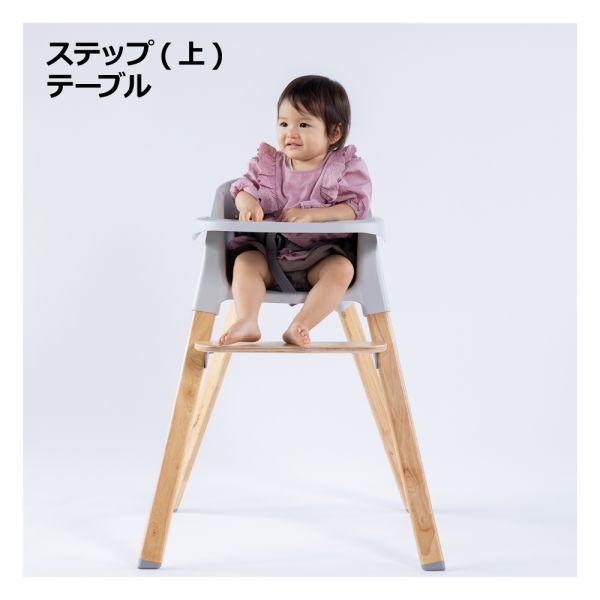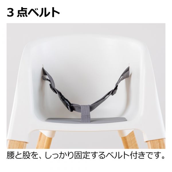 座面シート、ステップ、背もたれで姿勢をサポートするベビーチェアです。子供の食事時に大切な姿勢。姿勢が崩れてしまうと食事への集中力の低下や消化が悪くなってしまうことも…しっかりとした姿勢でお食事時間をより楽しく過ごしましょう。