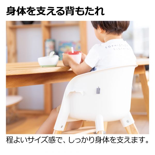 それぞれのご家庭のダイニングテーブルに合った高さで大人と一緒にお食事できます。