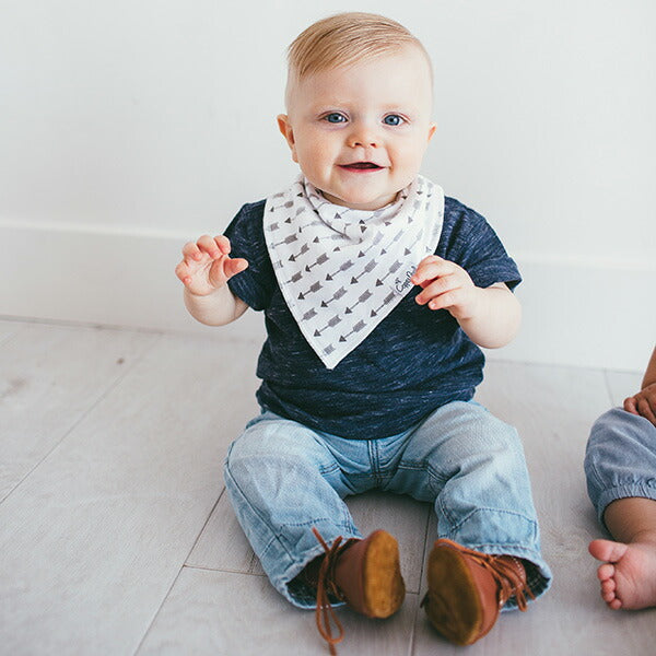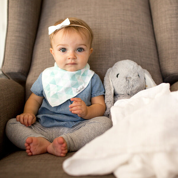 4枚セットになったバンダナビブは出産祝いに最適です。また、クリスマスやこどもの日にプレゼントすればベビーがもっとファッショナブルに!