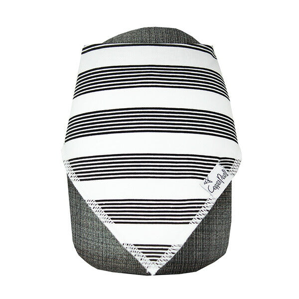 スタイリッシュなデザインの表地(綿)と吸水性と速乾性に優れた白い裏地(ポリエステル)の2枚仕立て。 表地がキャッチしたよだれの水分を裏地が吸い込み、毛細管現象によって素早く裏地の全面に広げます。それによって水分と空気が触れる面積を広くして速乾を実現。ポリエステルは毛細管現象による浸透速度が速いので、バンダナビブの裏地はいつもサラサラです。よだれの多いベビーでもお洋服が濡れにくいのはそのような仕組みなのです。