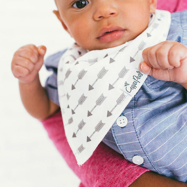 コッパーパールのビブセットの注目すべきは豊富な柄のバリエーションにあります。新作デザインが常に発売し続けられており、最新トレンドのデザインからお選びいただけます。多様な価値観をもつ社会を生きる現代のベビーにぴったりなお気に入りのデザインをきっとみつけられるはずです。
