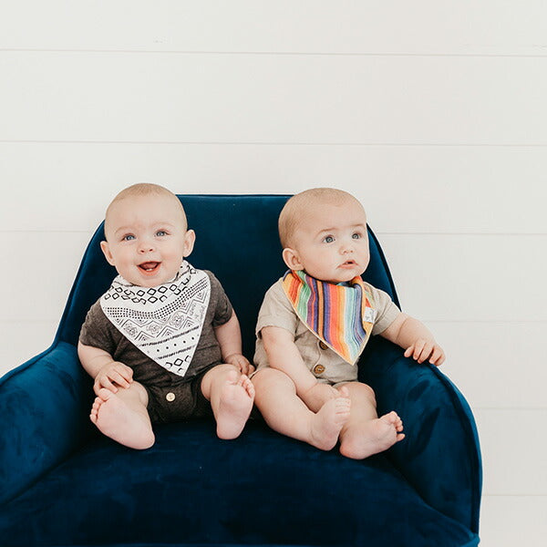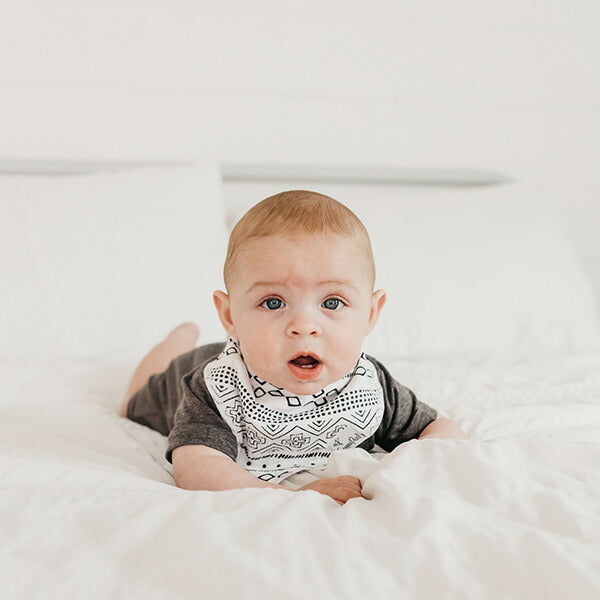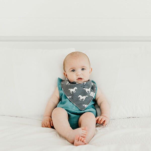 4枚セットになったバンダナビブは出産祝いに最適です。また、クリスマスやこどもの日にプレゼントすればベビーがもっとファッショナブルに!