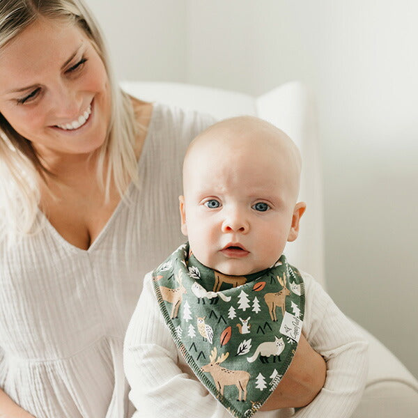 コッパーパールのビブセットの注目すべきは豊富な柄のバリエーションにあります。新作デザインが常に発売し続けられており、最新トレンドのデザインからお選びいただけます。多様な価値観をもつ社会を生きる現代のベビーにぴったりなお気に入りのデザインをきっとみつけられるはずです。