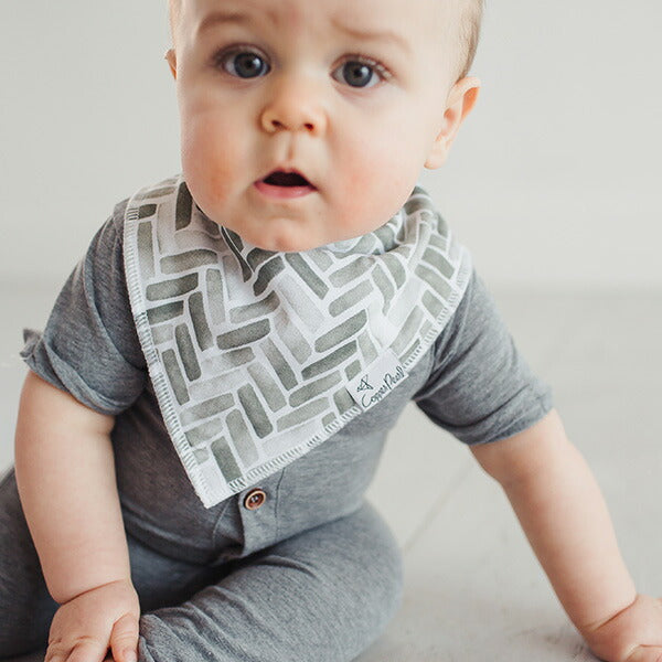 コッパーパールのビブセットの注目すべきは豊富な柄のバリエーションにあります。新作デザインが常に発売し続けられており、最新トレンドのデザインからお選びいただけます。多様な価値観をもつ社会を生きる現代のベビーにぴったりなお気に入りのデザインをきっとみつけられるはずです。