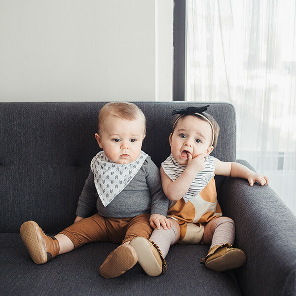 4枚セットになったバンダナビブは出産祝いに最適です。また、クリスマスやこどもの日にプレゼントすればベビーがもっとファッショナブルに!