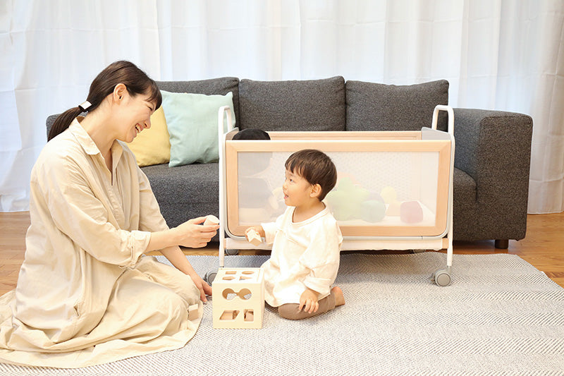 (キッチンでも)食事の準備や洗い物などで手が離せない時もママの目の届く位置に移動できます。