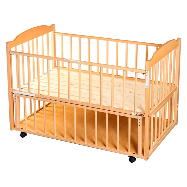 床板は国産ひのきのスノコです。通気性がよく、むく材なので赤ちゃんの汗でたわむこともなく、ひのきの香りで赤ちゃんもリラックス。(ひのきは岡山、広島産)