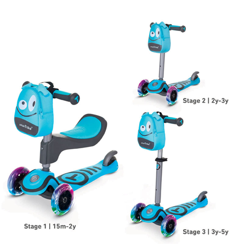 ステージ1(15~24カ月):ライディング練習。お子様が座って足で蹴りやすい快適なシート。スクーティングの基礎技術を獲得し、スクーティングコーディネーションを発展させます。