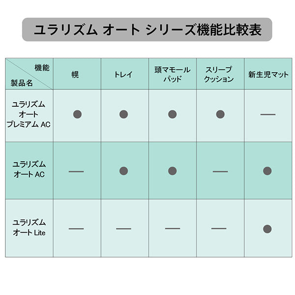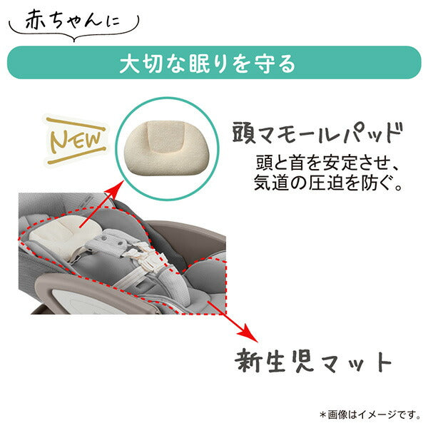 その他にも赤ちゃんの大切な眠りを守る「頭マモールパッド」と「新生児マット」、いつでも清潔に使える「取り外し可能な洗えるトレイ」と「洗濯機で丸洗いできるシート※」も赤ちゃんにもママにも嬉しいサポートがいっぱい。