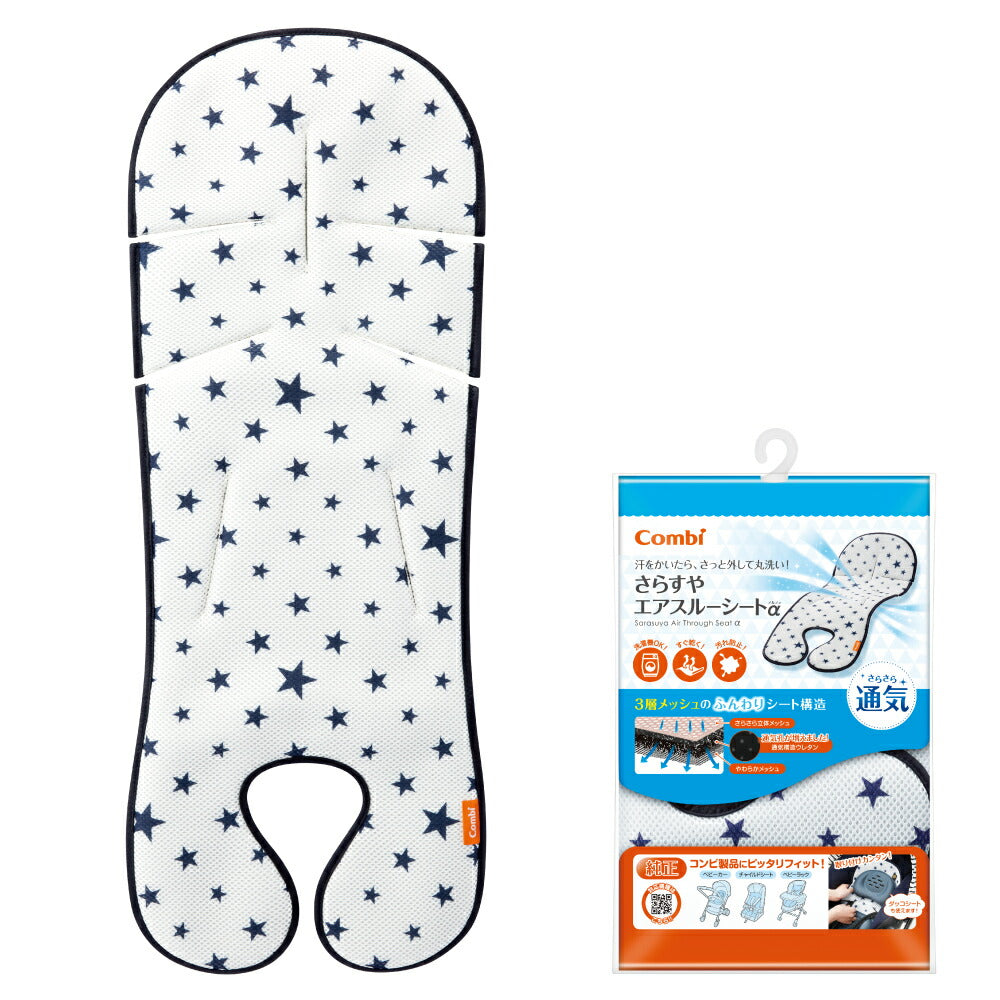 コンビのベビーカー・チャイルドシート・スウィングベッド&チェアに対応する「さらすやエアスルーシートα」は、3層メッシュのふんわりシート構造で汗っかきの赤ちゃんをムレと暑さから守ります。