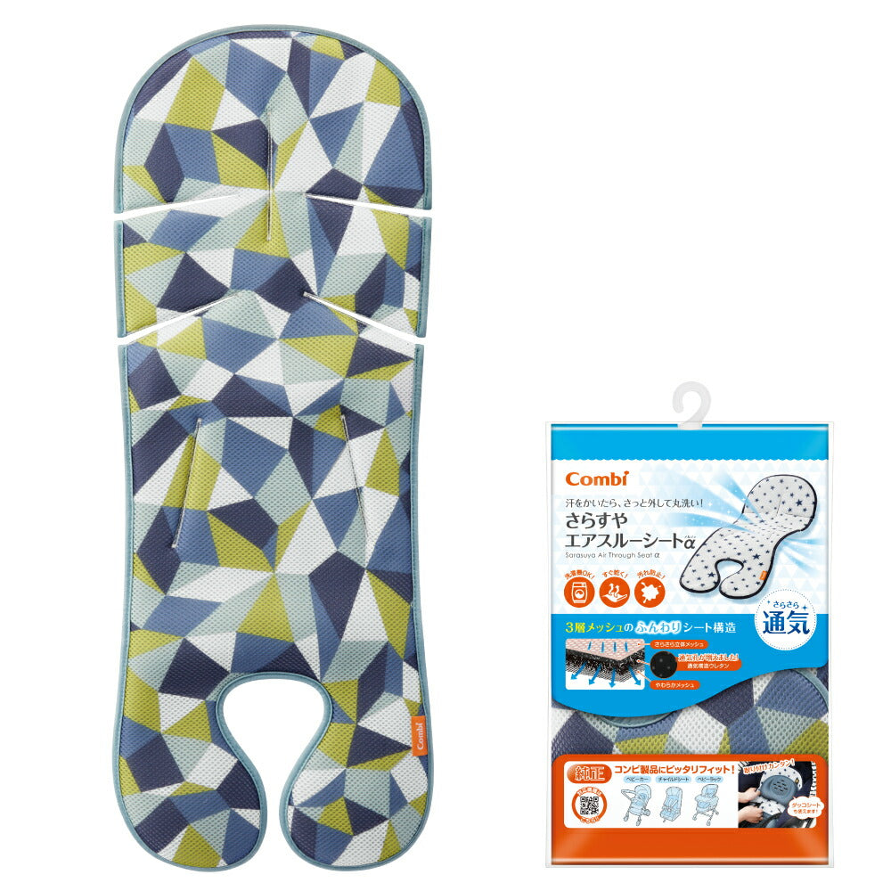 コンビのベビーカー・チャイルドシート・スウィングベッド&チェアに対応する「さらすやエアスルーシートα」は、3層メッシュのふんわりシート構造で汗っかきの赤ちゃんをムレと暑さから守ります。