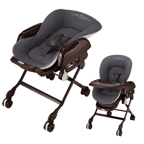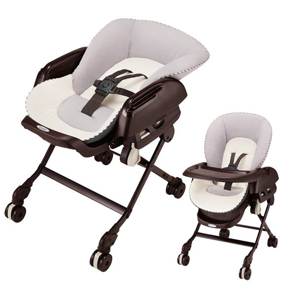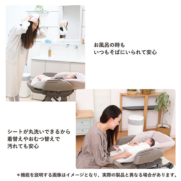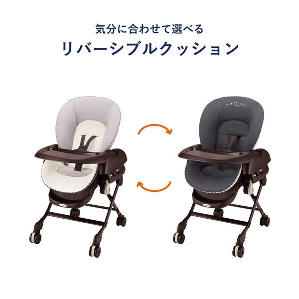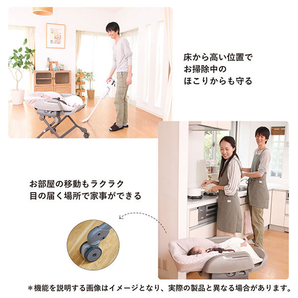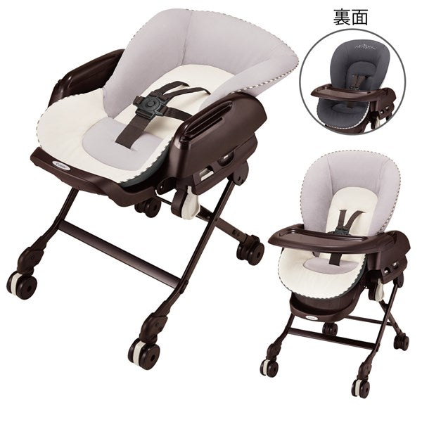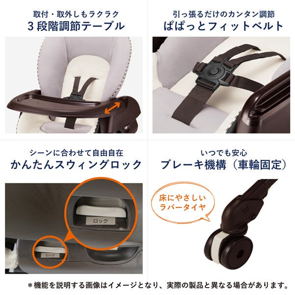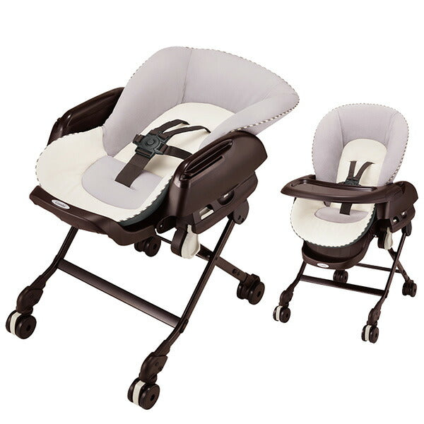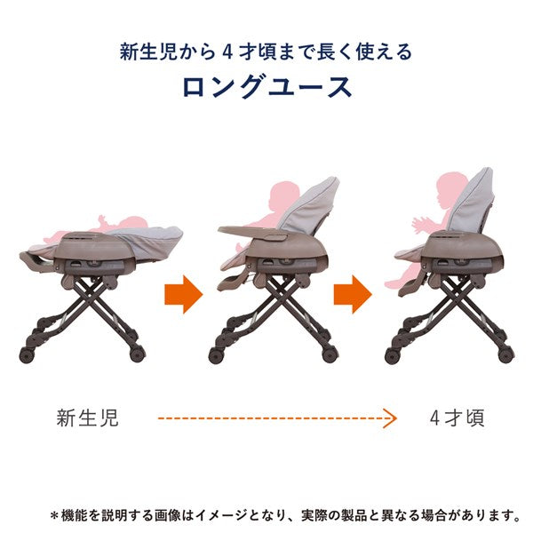 寝かしつけ・泣きやませからお食事のときのハイチェアまで、赤ちゃんの成長に合わせて使えます。