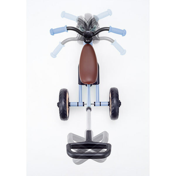 三輪車として使用する場合はペダルを簡単に取り付けることができます。(工具不要)