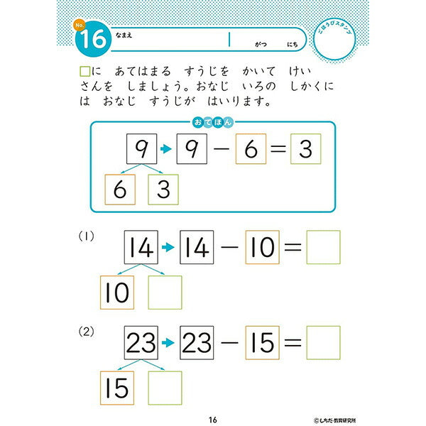 「くり上がり、くり下がり」問題にも挑戦して、計算力を高めます。