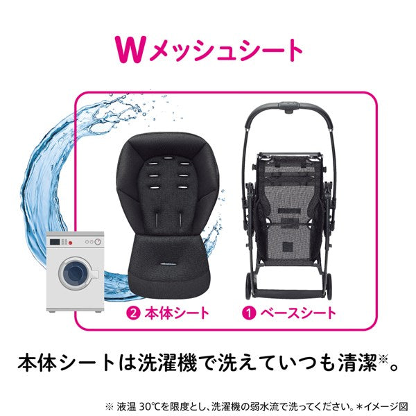 マザーズバッグと抱っこひもが余裕で収納できる33.3L※2の大容量バスケット。座面下に大きな空間を設けているため、前後左右どこからでも荷物をラクラク出し入れできます。